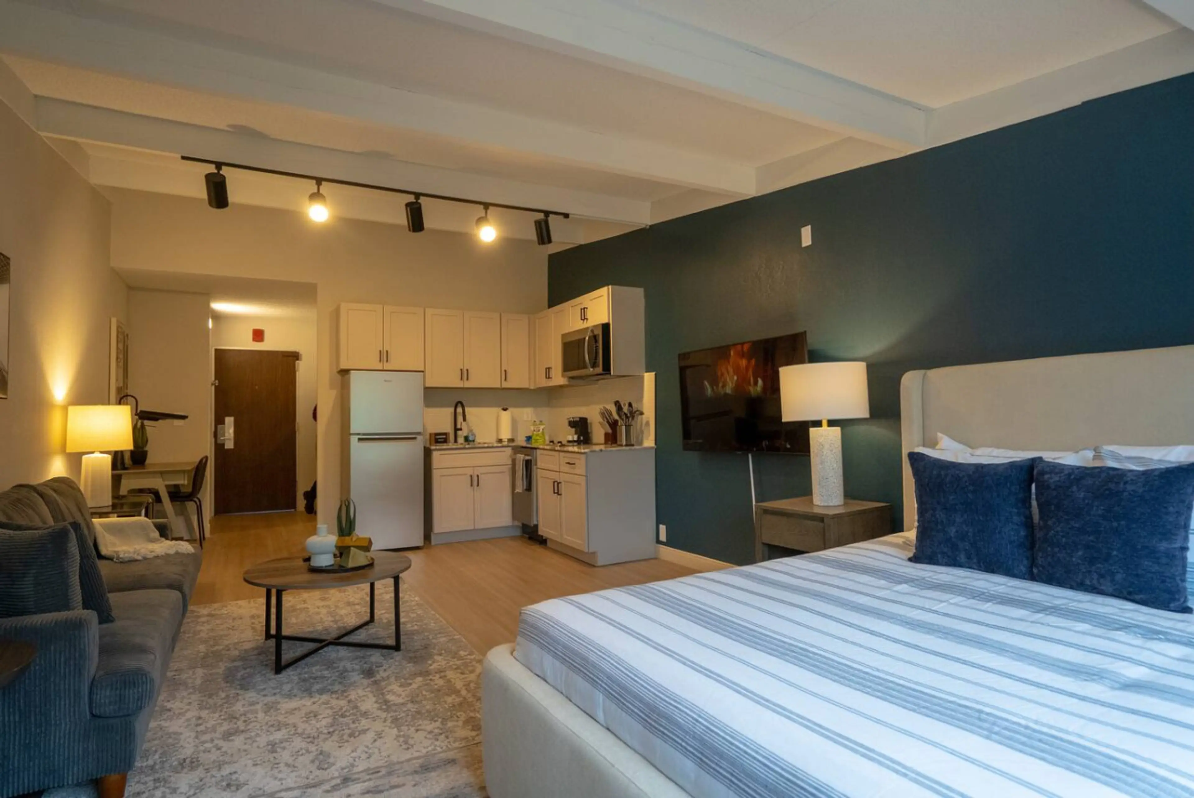 This contemporary loft features soaring ceilings, an open-concept layout, and premium finishes throughout. You'll find granite countertops, stainless steel appliances, and beautiful plank flooring. The unit comes fully furnished with everything you need for a comfortable stay, plus WiFi and all util...